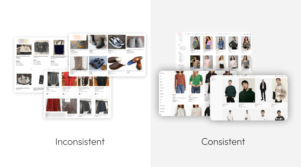 Consistency in product images is the cornerstone of a seamless and trustworthy shopping experience. When images vary in style, quality, or tone, it’s like a mix of voices speaking different languages simultaneously—confusing and challenging for shoppers to connect with the brands they trust or even recognize.